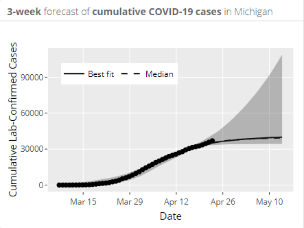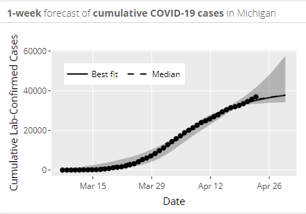 April 30, 2020 (1 week): roughly 2500 COVID+ hospitalized patients (beds needed) with roughly 340 in ICU